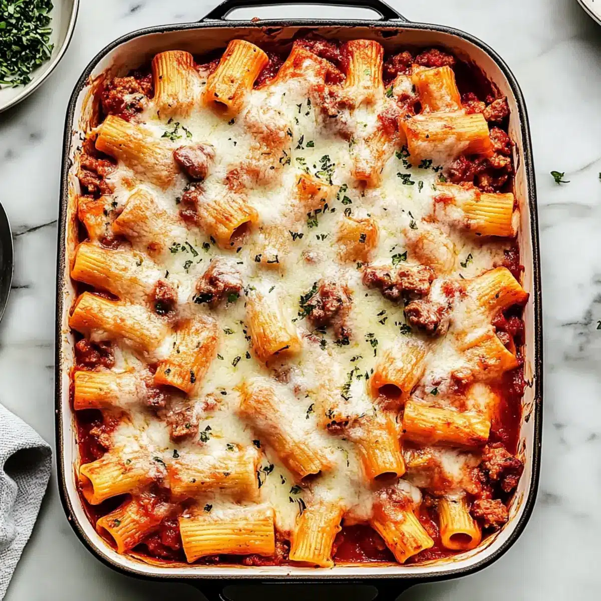 Layered Flavor: Don’t skip sautéing the sausage and beef; this step builds a rich flavor base that makes your Baked Rigatoni truly hearty.