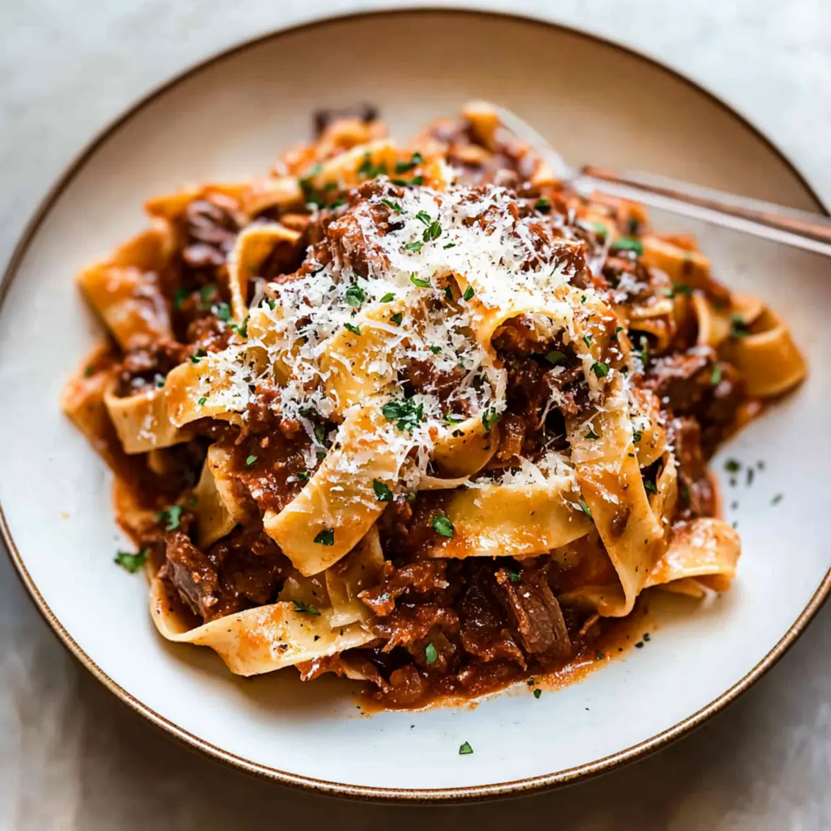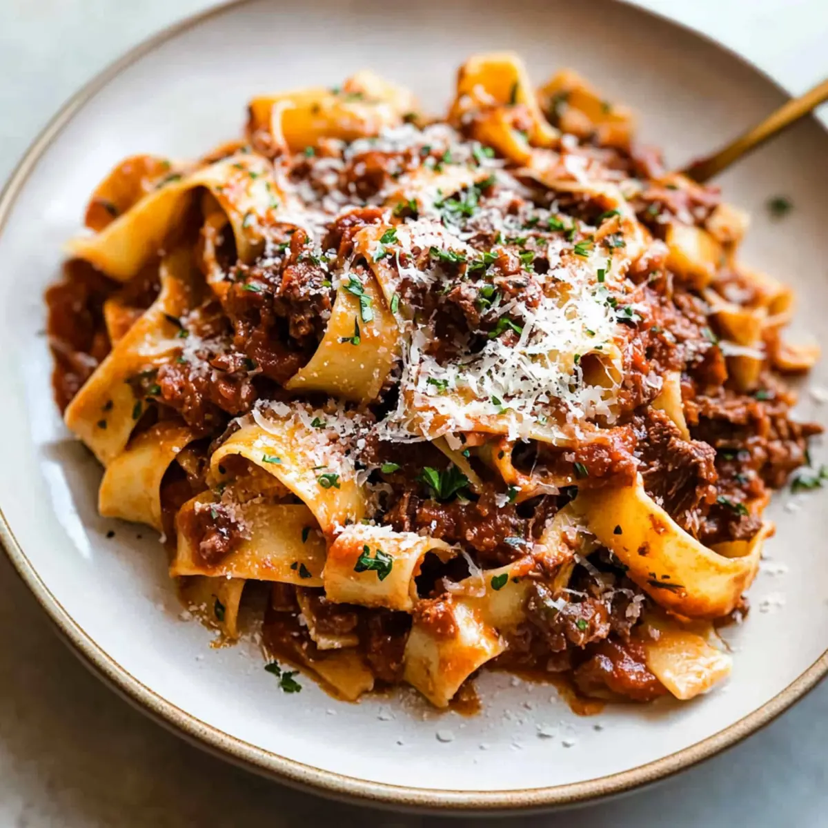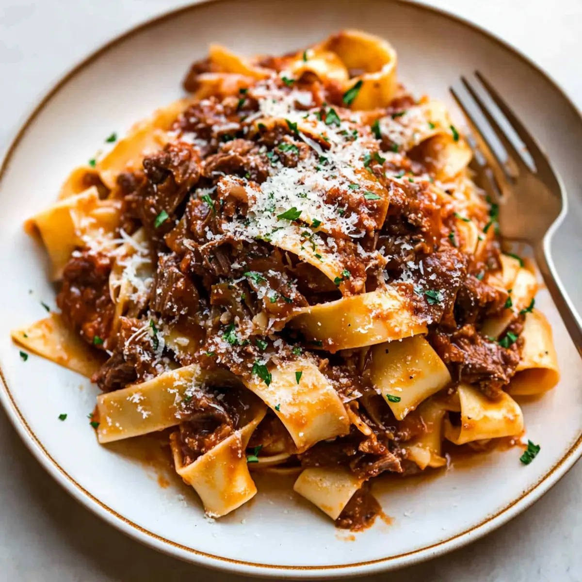 Perfect Pairing: Served with wide, ribbon-like pappardelle, every bite is a comforting hug of flavor.
