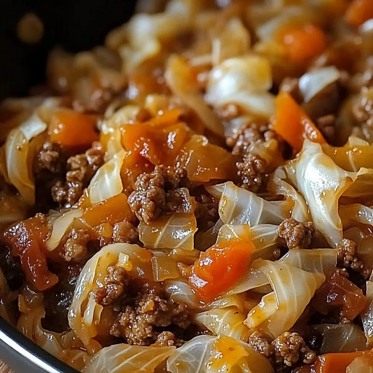 As I stirred the bubbling skillet, the fragrant mixture of sautéed onions and seasoned ground beef filled my kitchen with an irresistible aroma. This Hearty Cabbage and Ground Beef Skillet has become my go-to dish for those busy weeknights when I crave something comforting yet nutritious. It’s a budget-friendly delight that packs a punch of flavor while being low in carbs—perfect for any health-conscious food lover. The tender cabbage melds beautifully with the savory beef, creating a meal that even the pickiest eaters would adore. Plus, you can throw it together in under 30 minutes! Curious to discover how this simple yet satisfying dish can elevate your dinner table? Let’s dive into the delicious details!