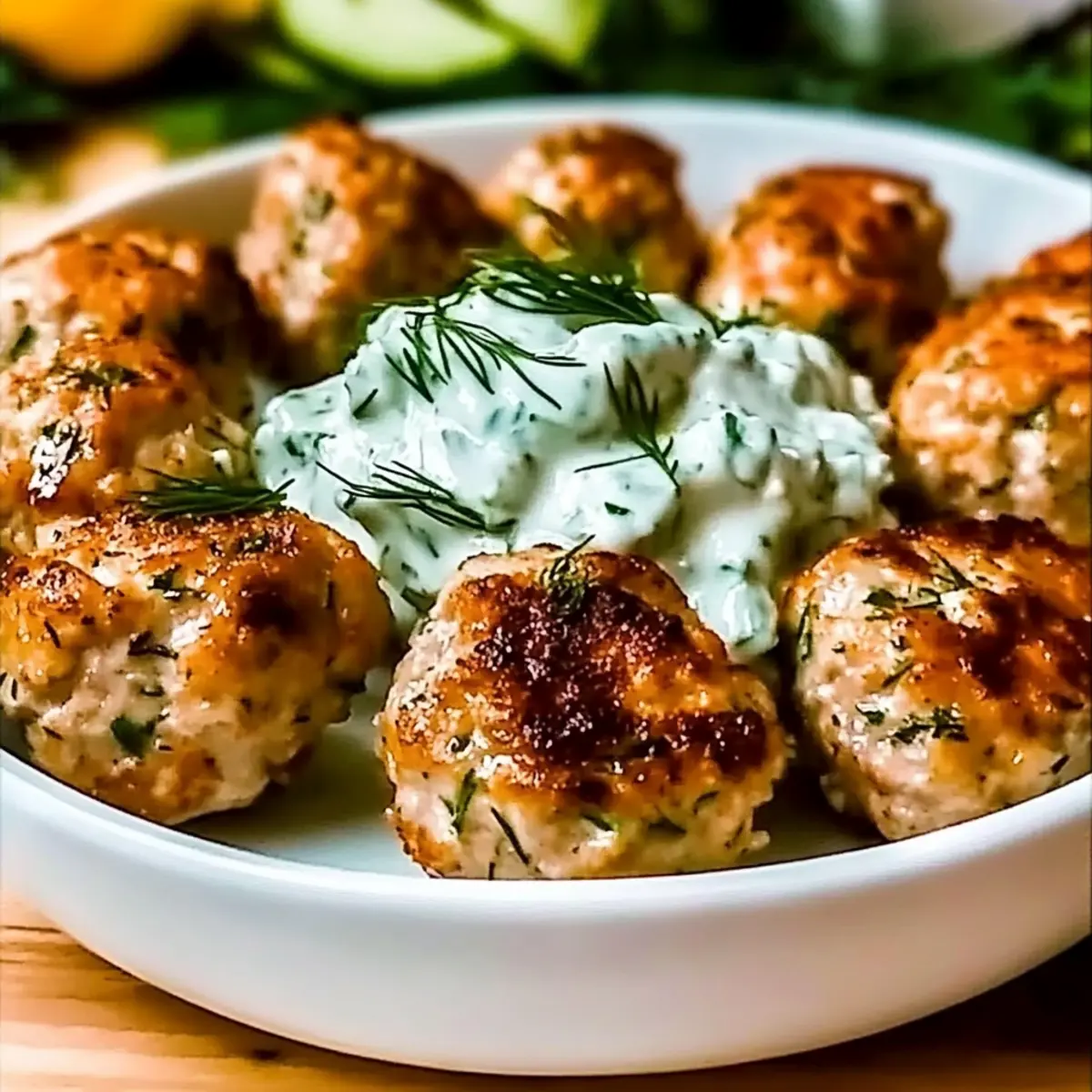 Savory Greek Chicken Meatballs with Creamy Tzatziki Delights
