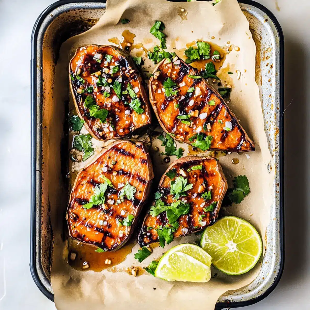 Squeeze fresh lime juice over the drizzled honey, adding a refreshing acidity that brightens the dish. Finally, sprinkle with chopped parsley for a pop of color and freshness. Your Chili + Honey Roasted Sweet Potatoes are now ready to serve, bringing a burst of flavor to your table!
