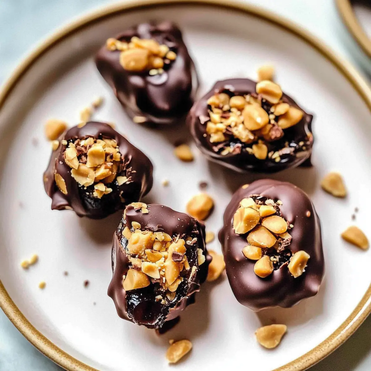 These Chocolate Covered Dates Stuffed with Peanut Butter are an excellent choice for meal prep enthusiasts! You can prepare the dates up to 24 hours in advance by stuffing them with peanut butter and chopped peanuts, then refrigerate them on a lined baking sheet. To keep the chocolate coating smooth and prevent any moisture from affecting their texture, store the stuffed dates in an airtight container until you’re ready to coat them in chocolate. Simply melt the chocolate chips and coconut oil, drizzle over the prepped dates, and place them back in the fridge for about 30 minutes to set. This way, you’ll have delicious, homemade treats ready to indulge throughout the week—perfect for busy weeknights or spontaneous cravings!