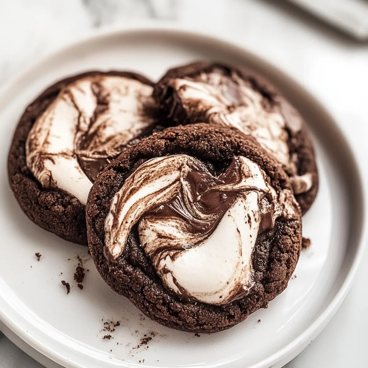 These Chocolate Marshmallow Swirl Cookies are ideal for those busy weeks when you need a sweet treat without the last-minute scramble! You can prepare the cookie dough up to 24 hours in advance. Simply follow the recipe up to Step 3, then cover the bowl tightly with plastic wrap and refrigerate. This helps develop flavors and keeps the dough fresh. When you’re ready to bake, scoop the dough onto a baking sheet and bake as directed. If you’re even more pressed for time, you can also freeze the formed cookie balls for up to 3 months. Just remember to add a couple of extra minutes to the baking time when using frozen dough. With this prep, you’ll have delicious Chocolate Marshmallow Swirl Cookies ready with minimal effort!