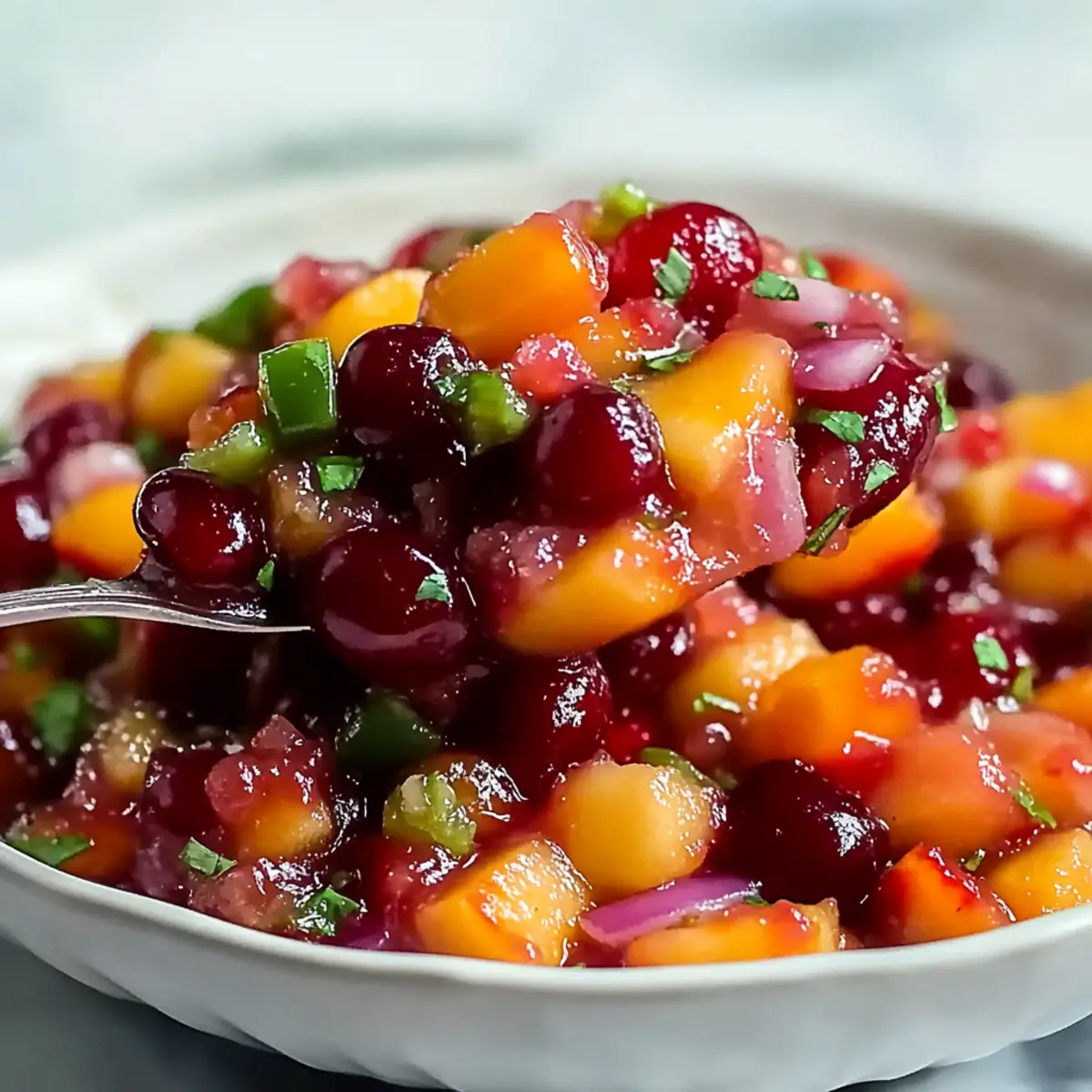 Vibrant, Fresh Ingredients: Bursting with juicy peaches and cherries, this salsa is a feast for the senses.
