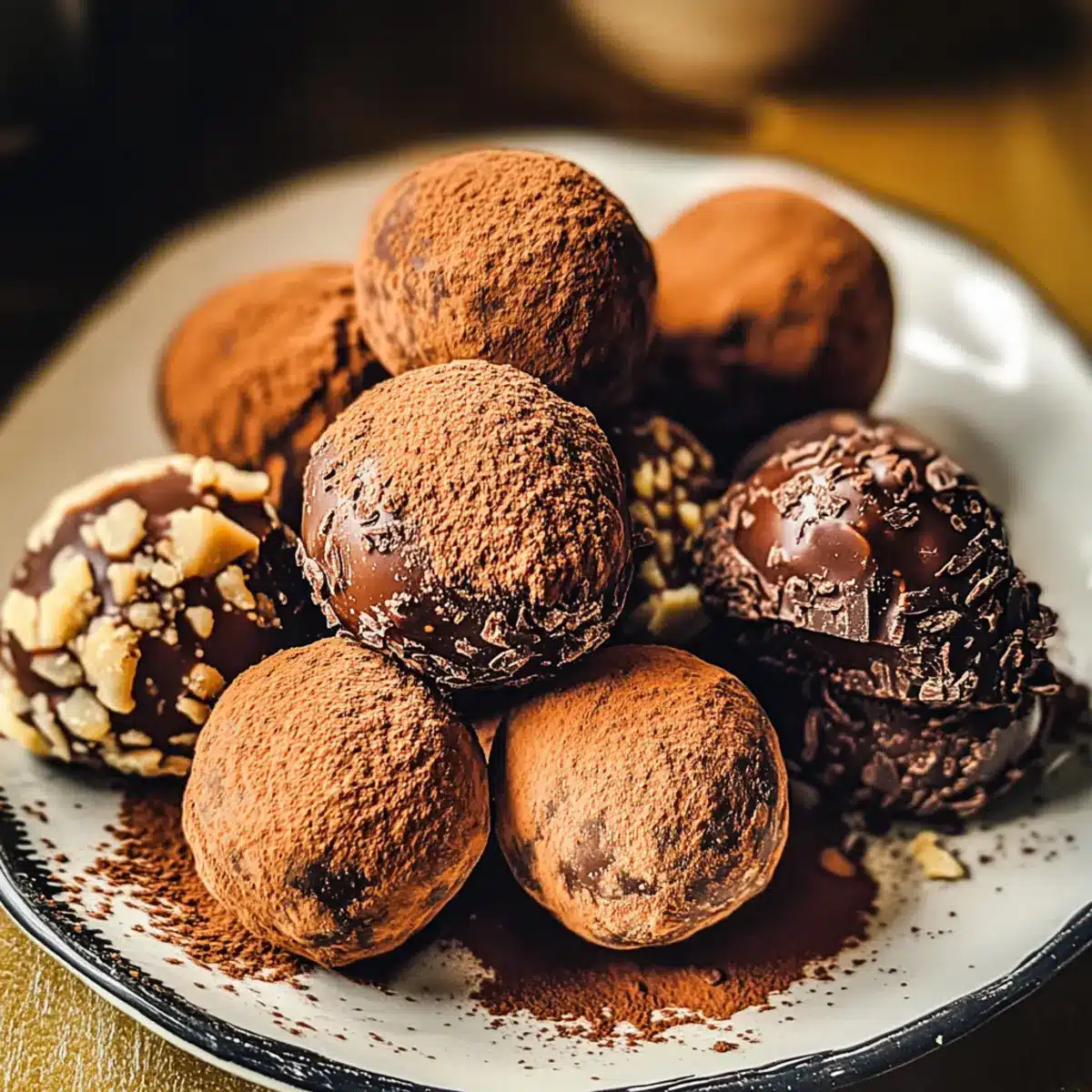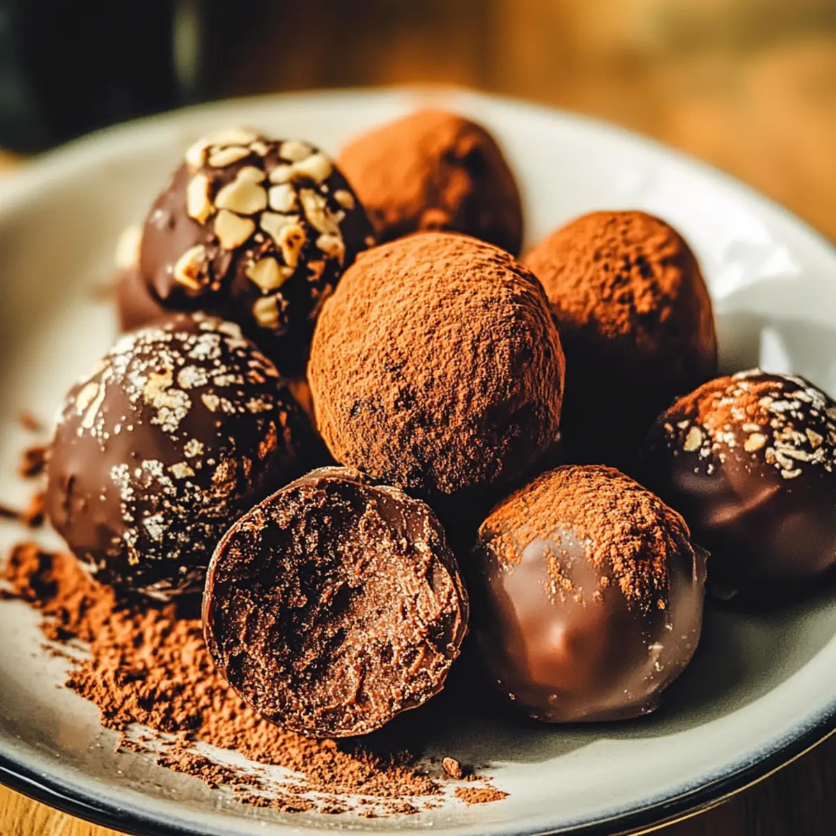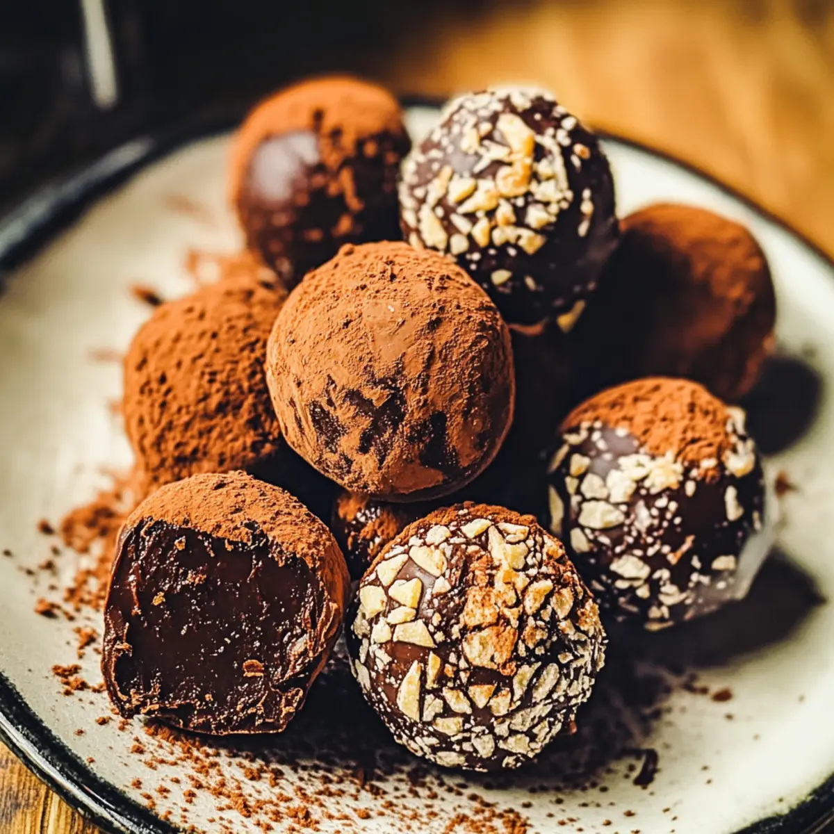 Nutty Crunch: Roll the truffles in finely chopped nuts like hazelnuts or almonds for a satisfying crunch that contrasts beautifully with the creamy center.