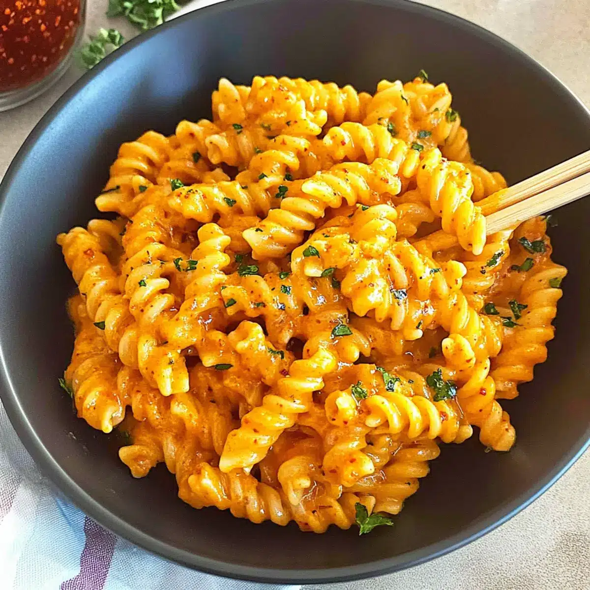 These Gochujang Pasta preparations are perfect for busy home cooks looking to save time! You can cook the fusilli pasta up to 24 hours in advance; just make sure to toss it with a bit of olive oil before refrigerating to prevent sticking. The creamy sauce can also be prepared ahead and stored in an airtight container in the fridge for up to 3 days. To maintain its luscious quality, reheat gently over low heat while adding a splash of cream or pasta water to restore the consistency. When you’re ready to serve, combine the pasta with the sauce, heat through, and garnish with parsley for a delicious meal that tastes just as fresh!