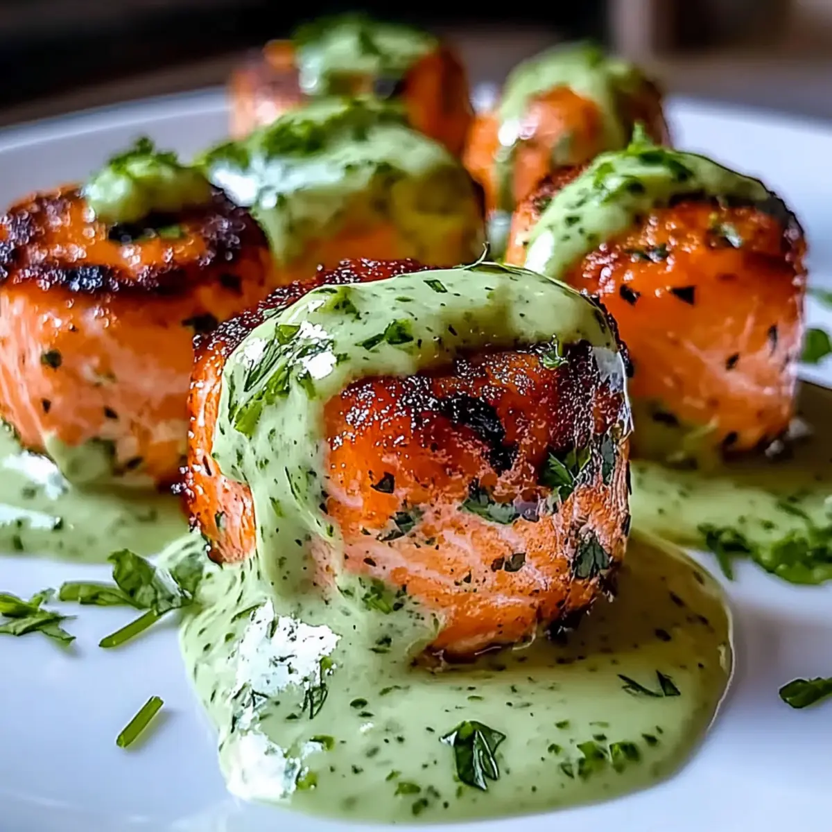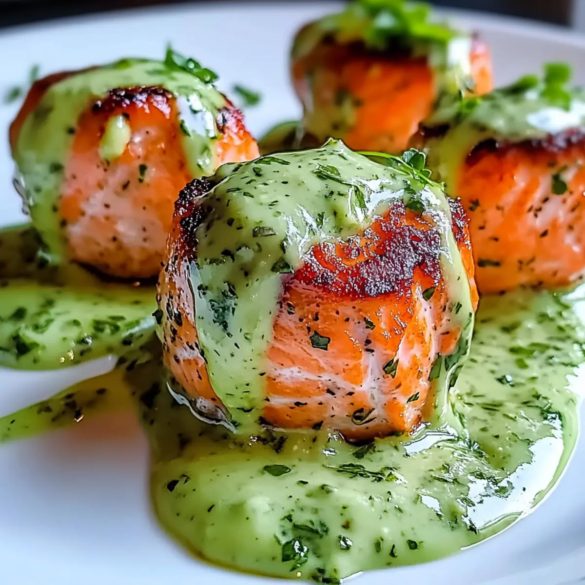 Delicious Grilled Salmon Balls with Creamy Avocado Sauce