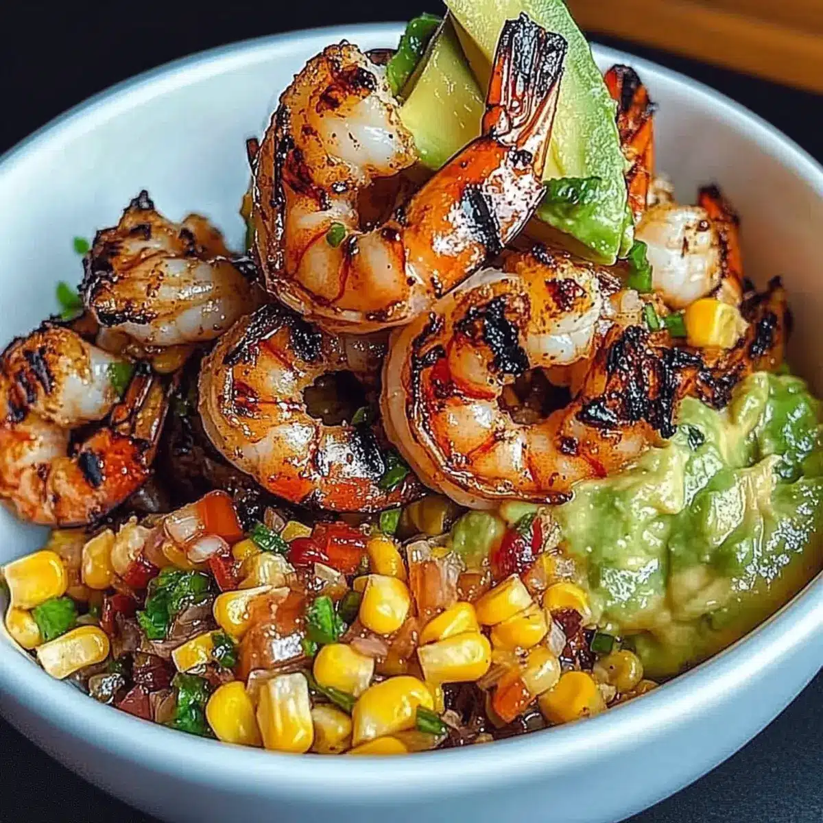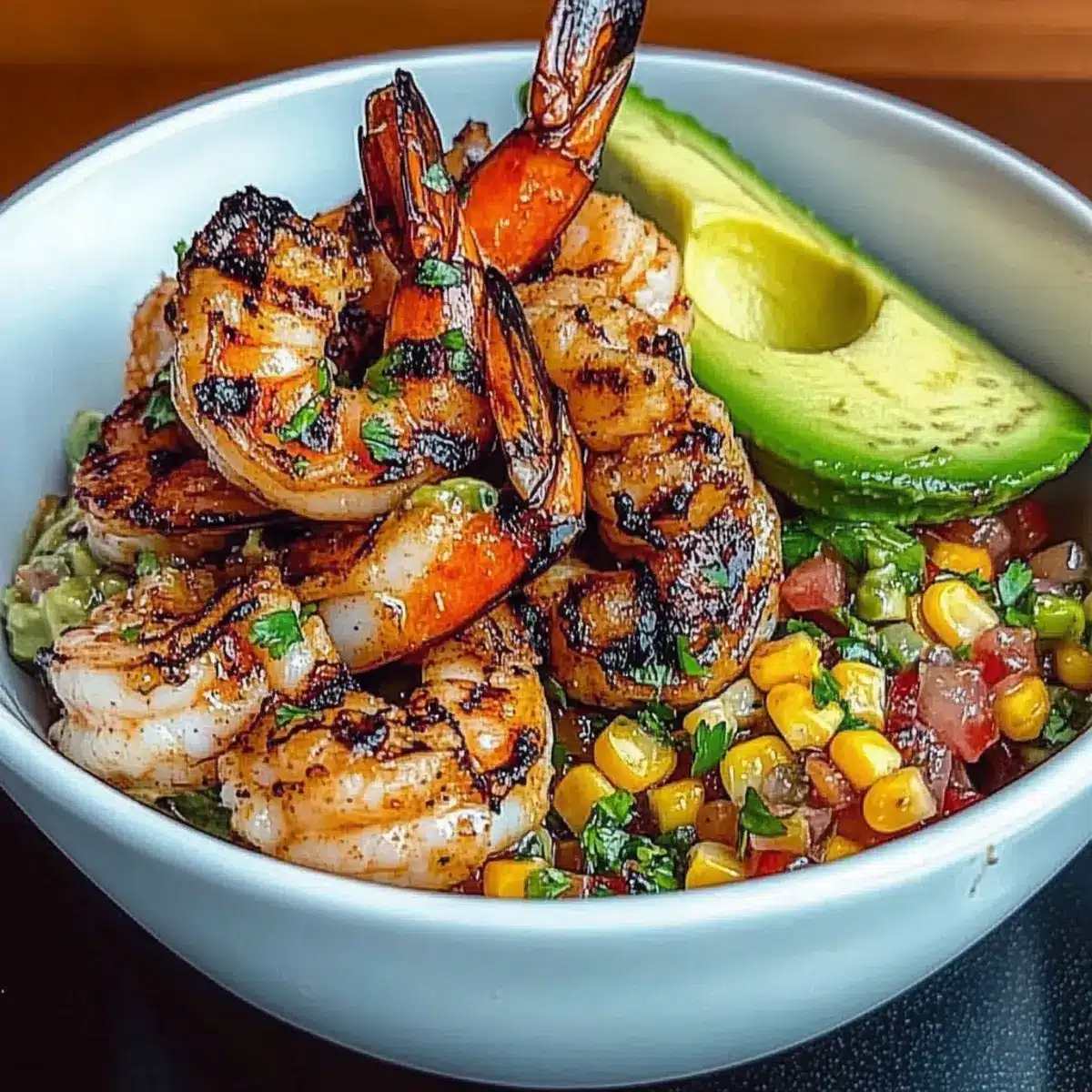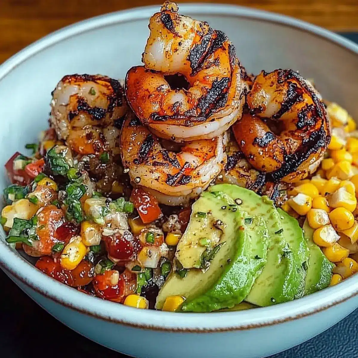 Savor a Grilled Shrimp Bowl with Avocado & Corn Salsa Delight