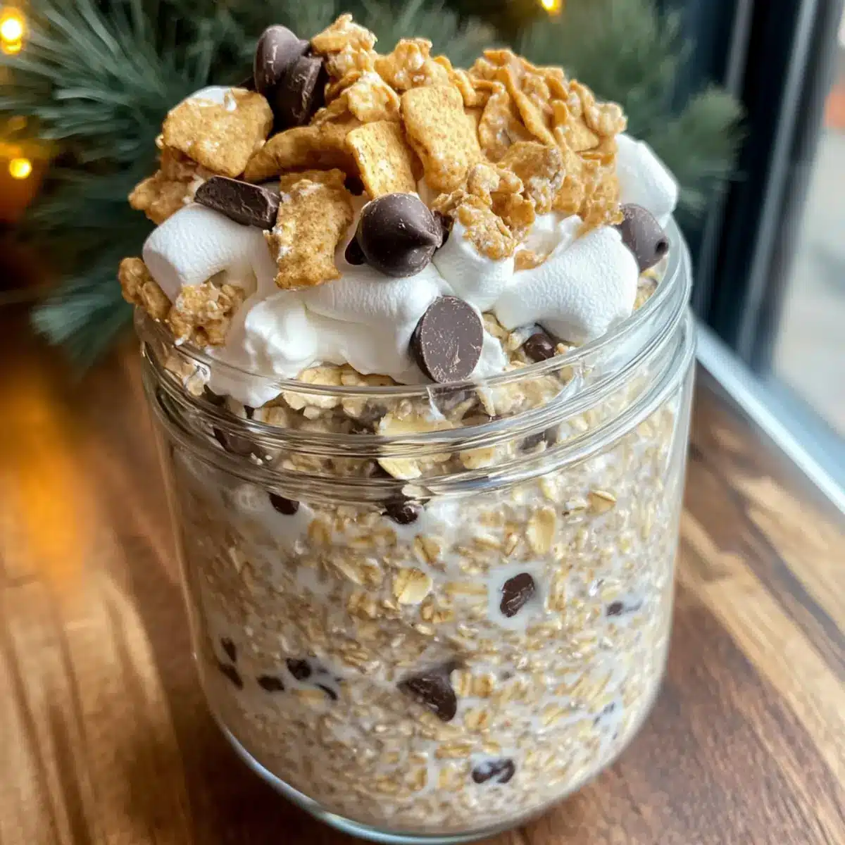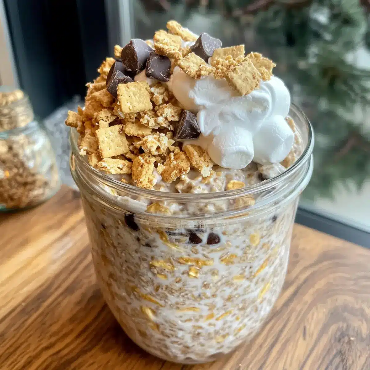 These High Protein S’mores Overnight Oats are perfect for meal prep aficionados! You can prepare the oat mixture up to 24 hours in advance, allowing the oats to absorb the flavors and thicken beautifully. Simply combine rolled oats, Greek yogurt, almond milk, maple syrup, chia seeds, protein powder, and salt in an airtight container and refrigerate. To maintain the creamy texture and prevent sogginess, store toppings like mini marshmallows, chocolate chips, and crushed graham crackers separately. When you’re ready to serve, simply scoop the oats into bowls and add your desired toppings for a delightful breakfast that’s just as delicious as when it was freshly made!