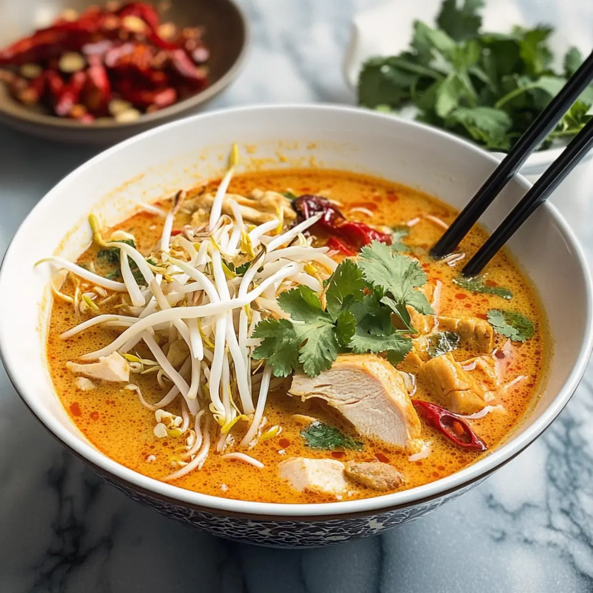 These Spicy Coconut Laksa Noodle Soup preparations are ideal for busy home cooks looking to save time during hectic weekdays! You can prepare the soup base and cook the chicken up to 24 hours in advance; simply refrigerate them in airtight containers to maintain freshness. The rice noodles can also be soaked ahead and stored, but they are best cooked just before serving to keep them from becoming mushy. When you’re ready to enjoy your laksa, simply reheat the soup base, add the noodles for a quick cook, and garnish with bean sprouts, cilantro, and red chilies. With these make-ahead tips, you’ll have a delicious meal ready with minimal effort on those busy nights!