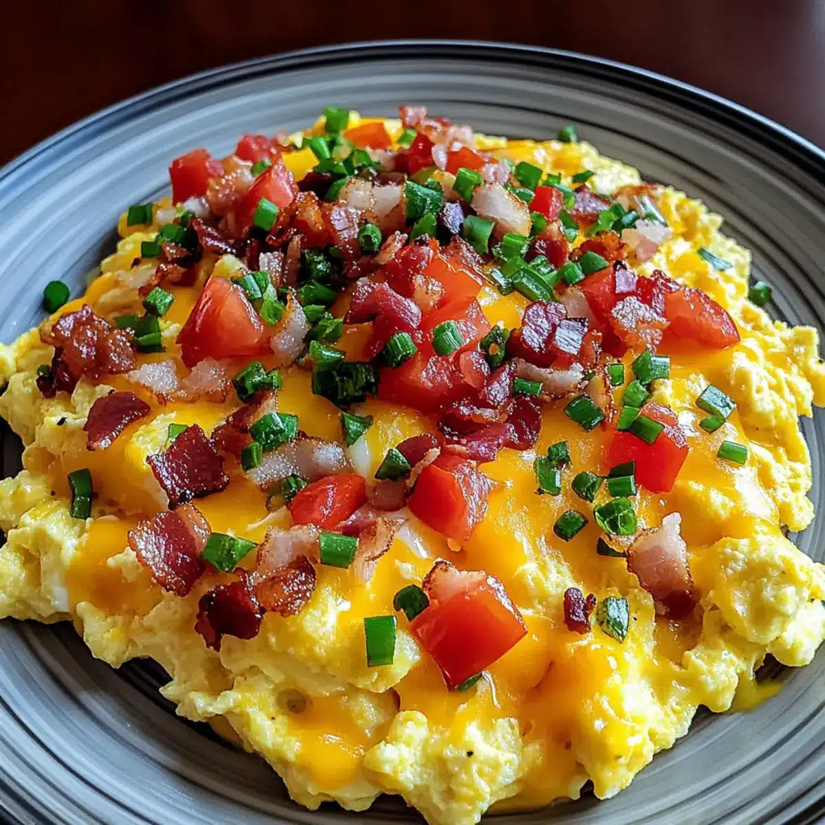 A morning without loaded scrambled eggs feels like a missed opportunity—a canvas waiting to be filled with flavor and joy. These vibrant, customizable delights are an absolute game changer for breakfast enthusiasts, transforming simple eggs into a hearty feast in just 20 minutes. Picture creamy, soft eggs intertwined with tangy cheddar, crispy bacon, and colorful veggies; it’s a breakfast that effortlessly satisfies and pleases. Not only are these loaded scrambled eggs beginner-friendly, making them perfect for cooking novices, but they also offer a delightful variety to suit anyone’s mood or palate. Are you ready to whisk up a plateful of this comforting dish? Let’s dive into the details!