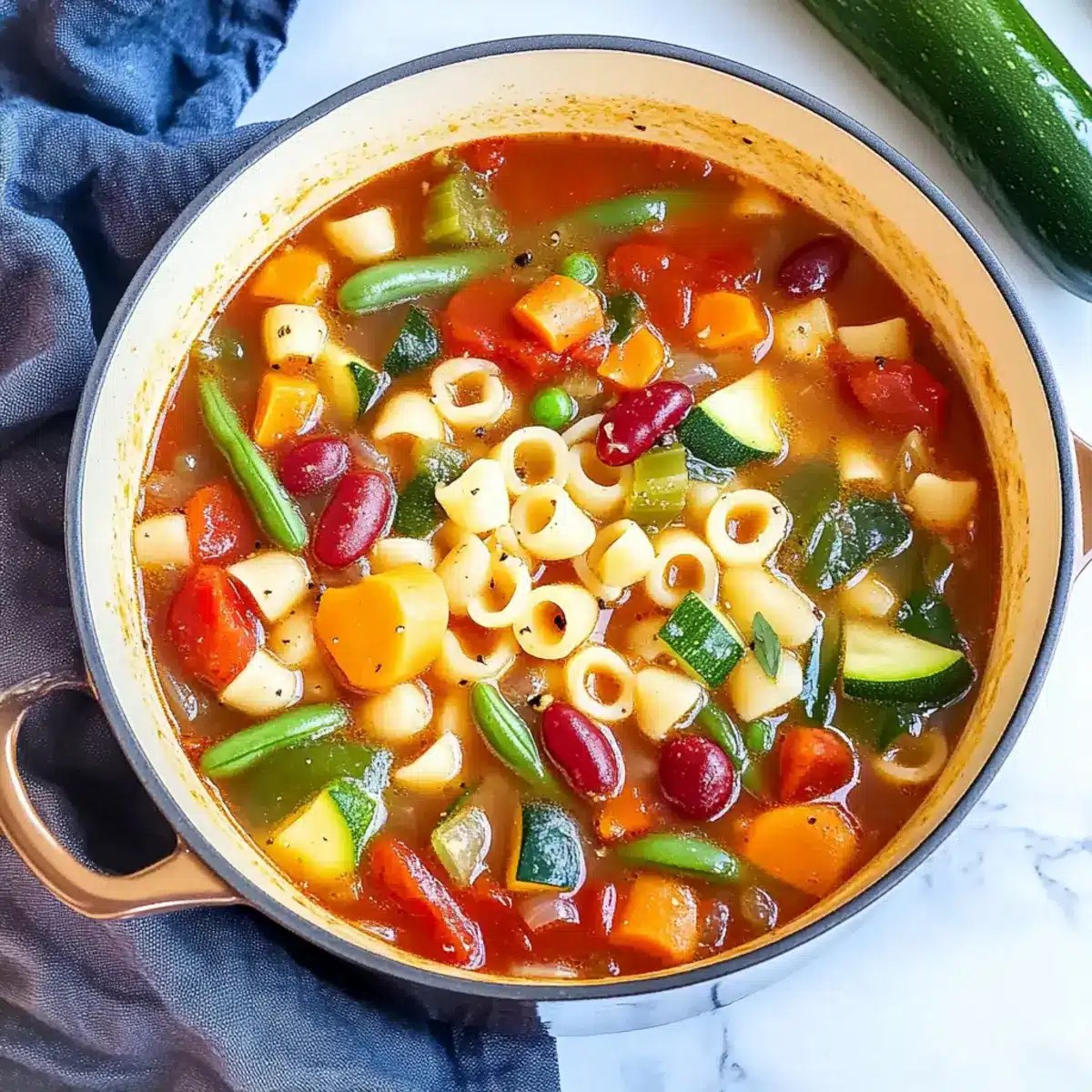 Yes, definitely! This minestrone soup is vegetarian-friendly and can be made vegan by ensuring your vegetable stock is plant-based. If you’re concerned about allergies, keep in mind that beans and vegetables can be substituted for alternatives. For a gluten-free option, simply replace the ditalini pasta with gluten-free pasta varieties, and enjoy a delicious meal without worry.