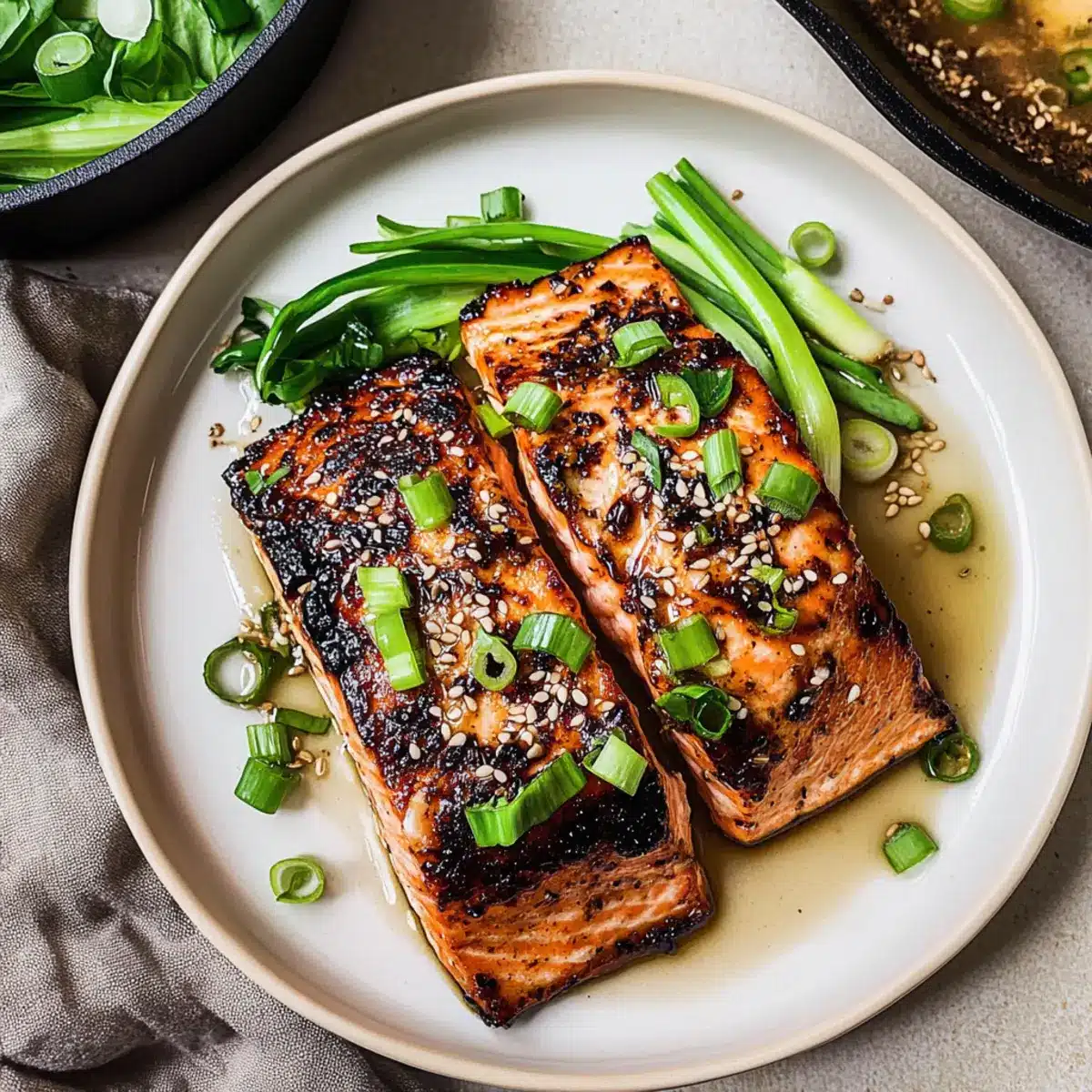Once cooked, carefully remove the salmon from the oven or air fryer. Transfer the fillets to a serving platter, and drizzle any remaining miso butter on top for added richness. Garnish with toasted sesame seeds and extra sliced green onions for a vibrant presentation. Pair your Miso Butter Salmon with steamed rice and fresh vegetables for a complete and satisfying meal.