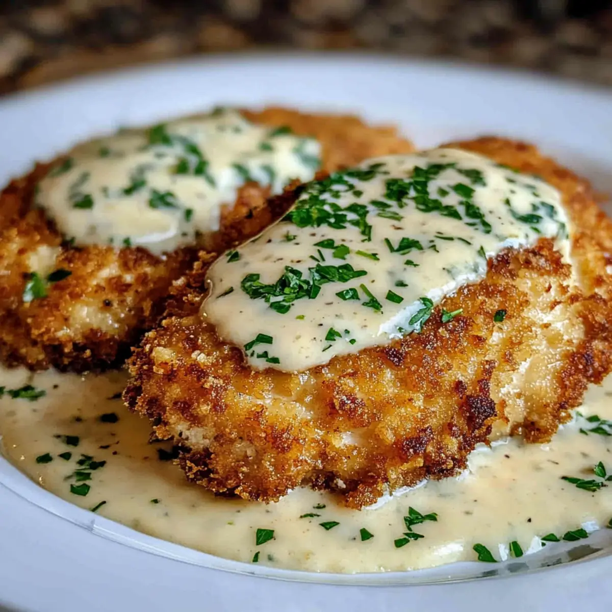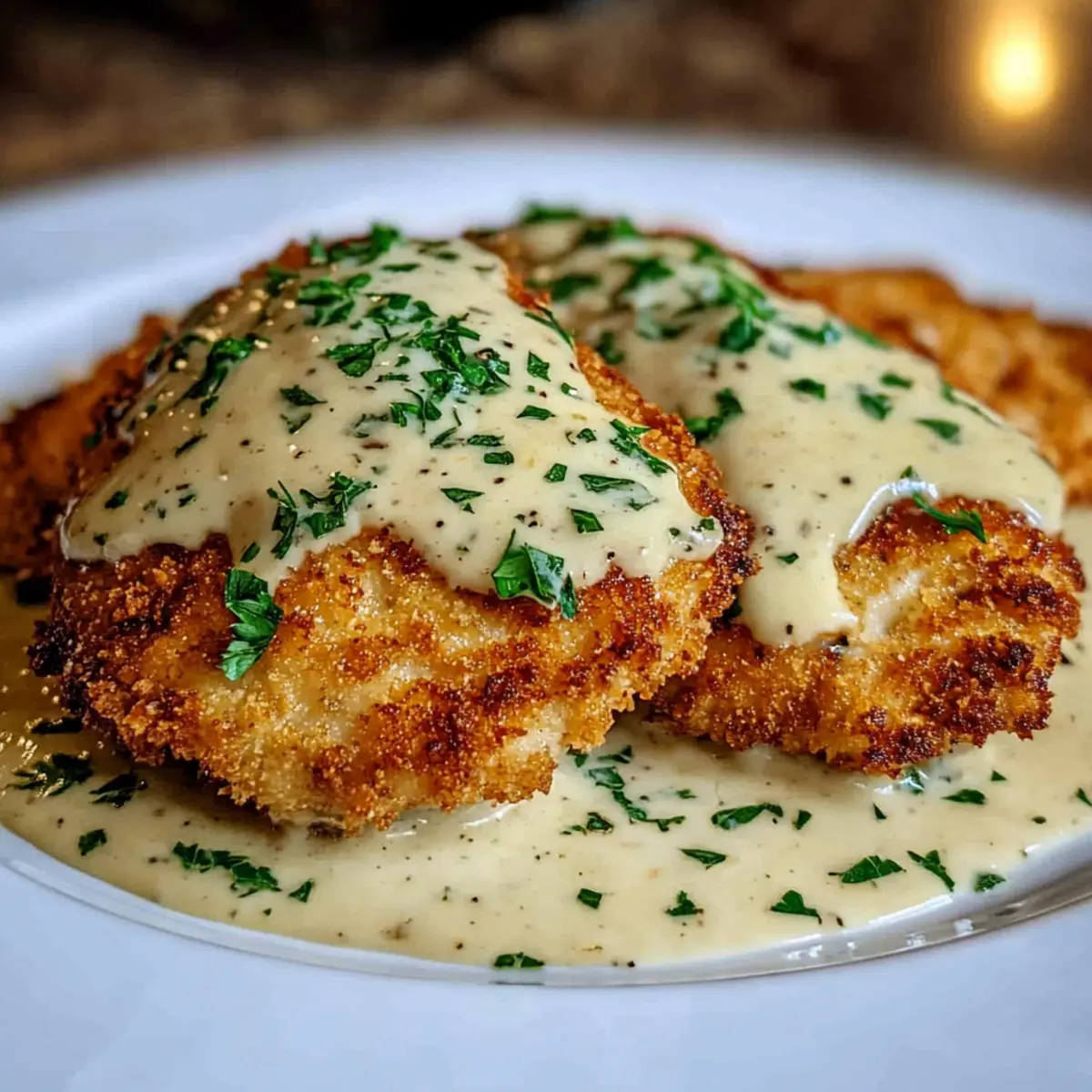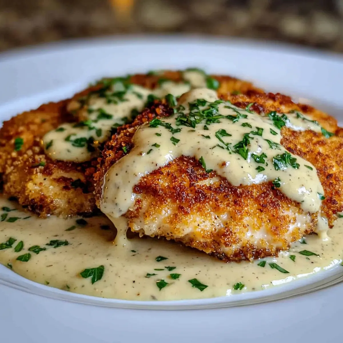 Definitely! Store leftovers in an airtight container in the fridge for up to 3 days. If you can, separate the chicken from the creamy sauce to maintain the crispiness of the crust. Reheating can be done in a skillet for the best results.
