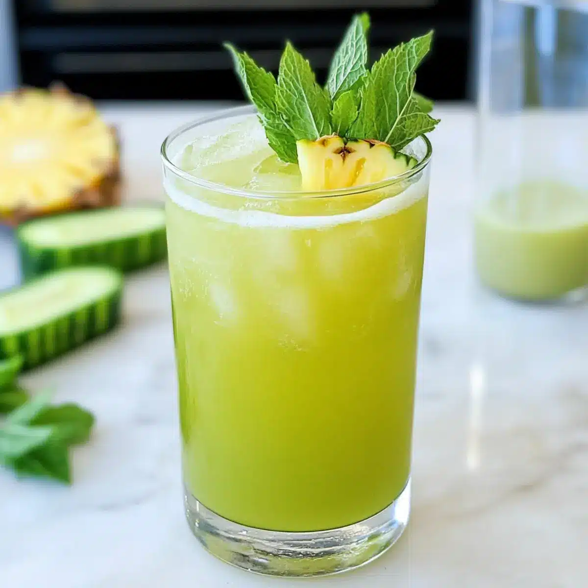 Preparing your Pineapple Cucumber Agua Fresca ahead of time makes entertaining a breeze! You can blend the cucumber, pineapple, lime juice, ginger, and mint up to 24 hours in advance; just store it in an airtight container in the refrigerator to keep it fresh. If you prefer a smoother texture, strain the mixture after blending, then refrigerate. Remember to give it a good shake before serving, as separation is normal. When you’re ready to serve, pour it over ice and tailor the sweetness with maple syrup or coconut water. This way, you’ll enjoy a delicious, refreshing drink with minimal last-minute effort!