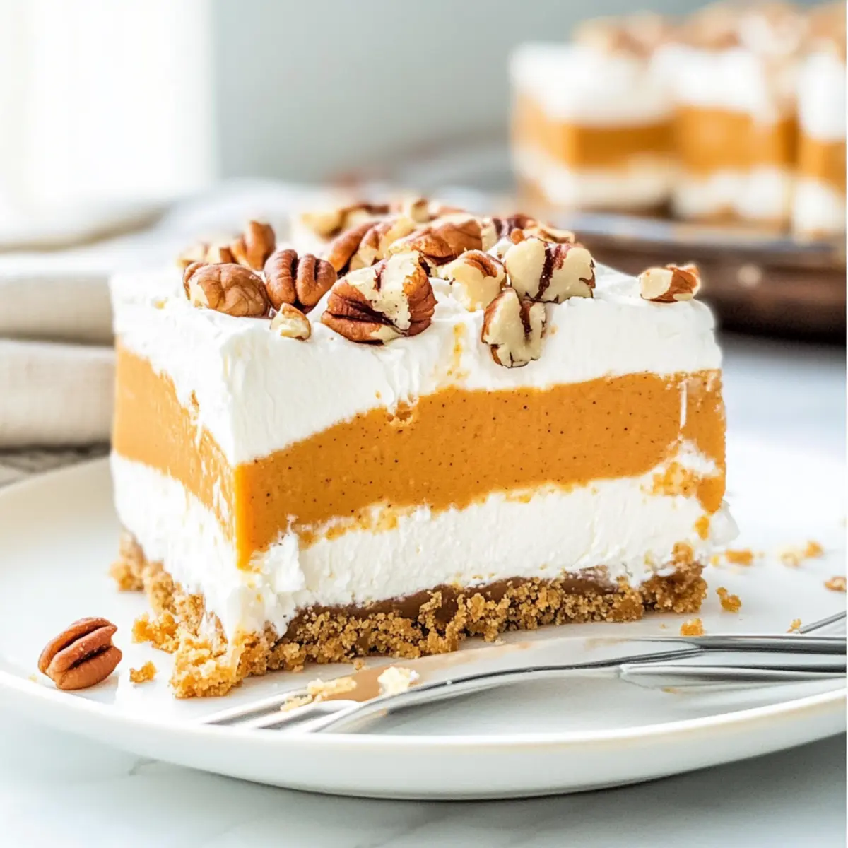 - Once chilled, slice your Pumpkin Lush into squares for serving and enjoy each smooth, creamy bite.