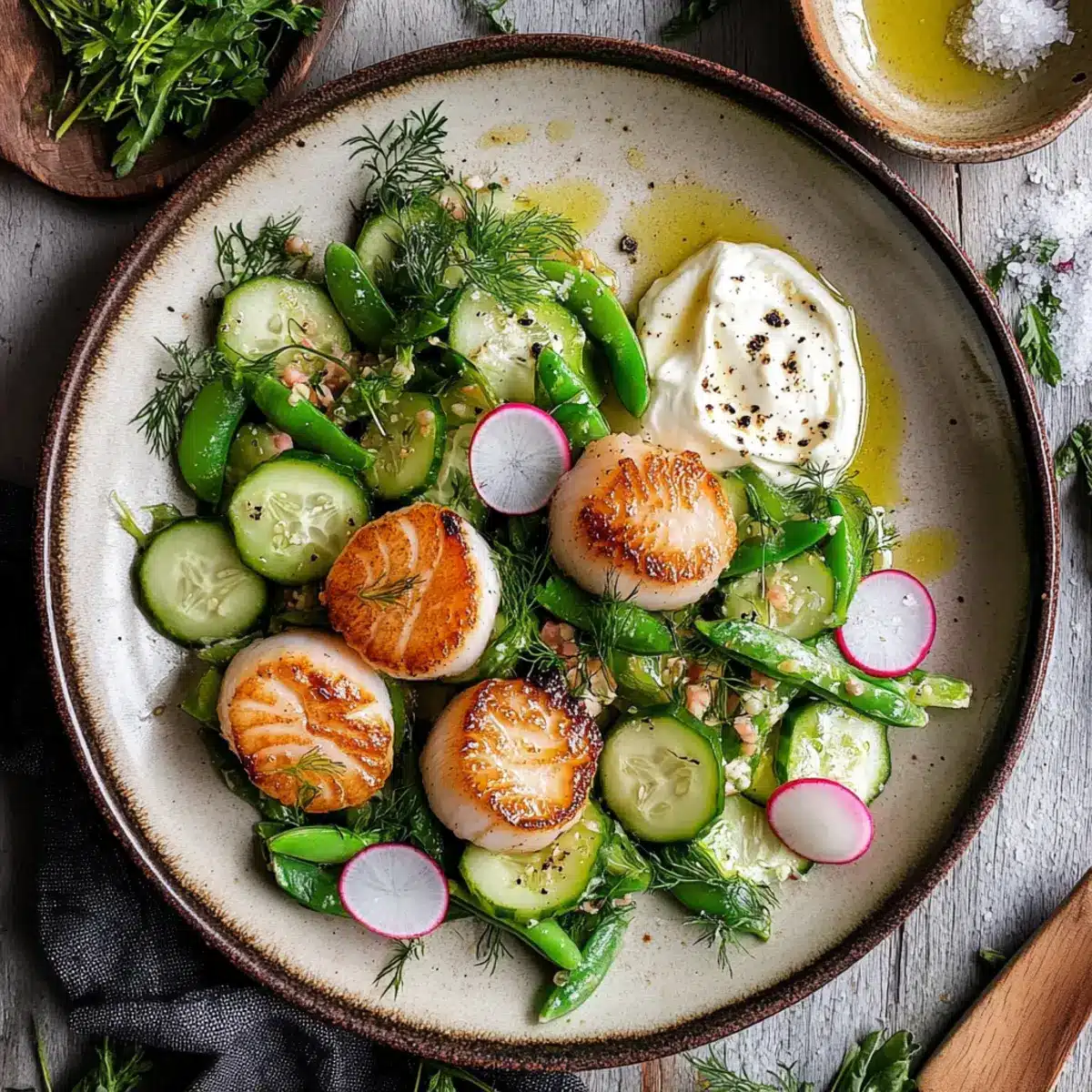 The scent of the ocean wafts through my kitchen as I prepare a dish that embodies the essence of spring: Seared Scallops with Cucumber Salad. There’s something utterly magical about the golden-brown scallops, perfectly caramelized on the outside and tender within, perfectly mirrored by the refreshing crunch of the cucumber salad. Not only is this recipe a quick delight ready in under 30 minutes, but it also brings a burst of fresh flavors that makes it an ideal light meal for any dining occasion. With the creamy indulgence of mascarpone cheese elevating this dish, it transforms a simple seafood experience into a sophisticated affair. Are you ready to impress your loved ones with a meal that’s as visually stunning as it is delicious? Let’s dive into this culinary creation!