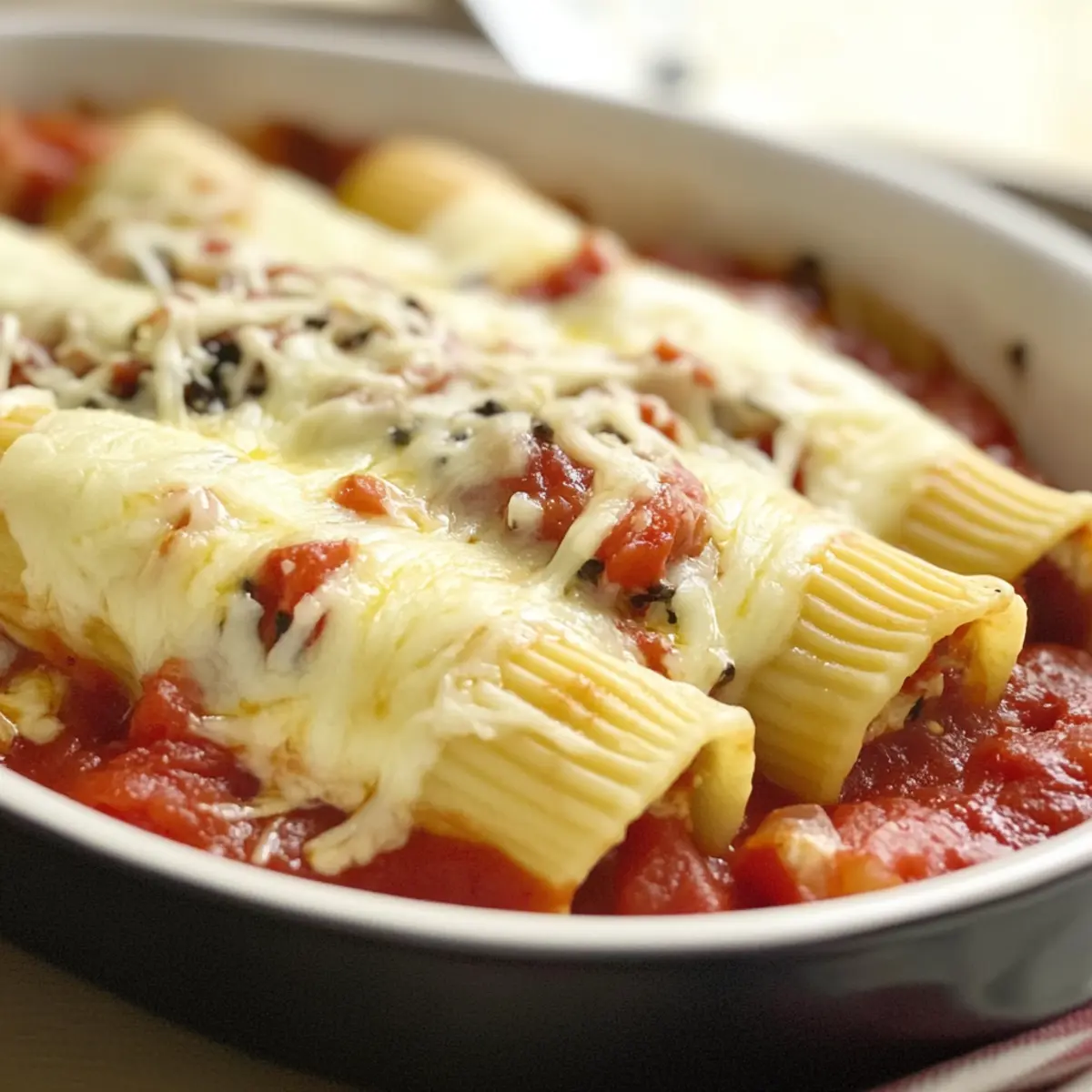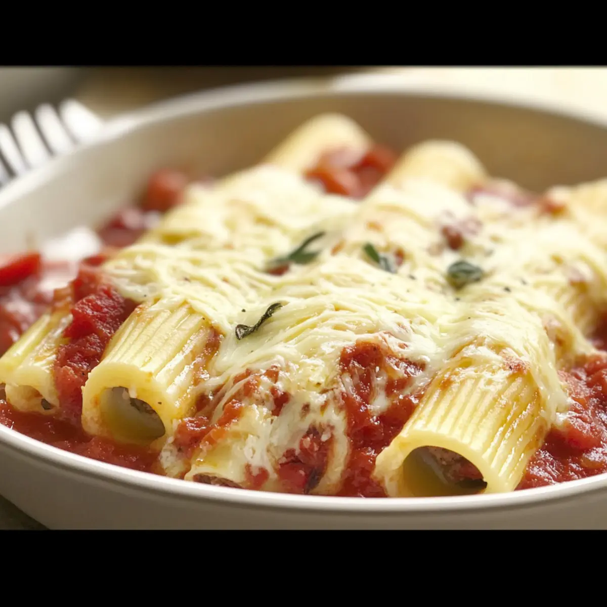 Once out of the oven, let the Skinny Three-Cheese Manicotti rest for about 5 minutes. This allows the filling to set slightly and makes serving easier. As you slice into it, admire the rich layers of flavor and texture that await you!