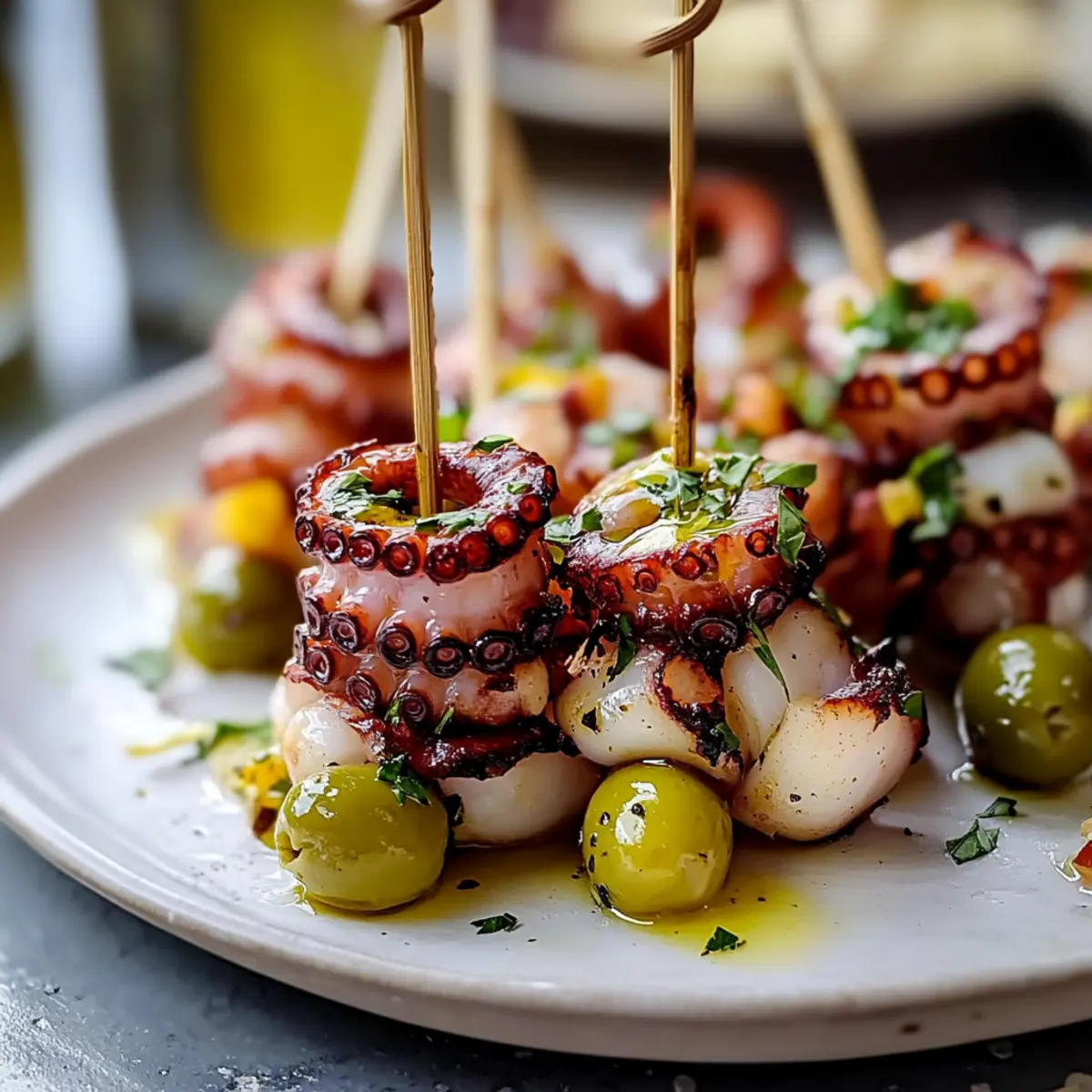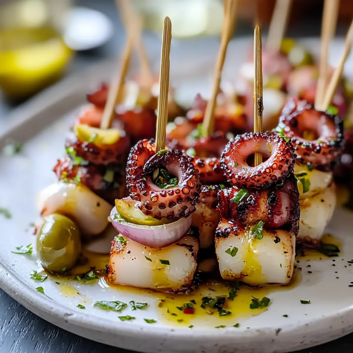 Delectable Experience: These Spanish Octopus Appetizers are a feast for the senses. Each skewer bursts with vibrant color and taste, transforming any gathering into a lively affair.