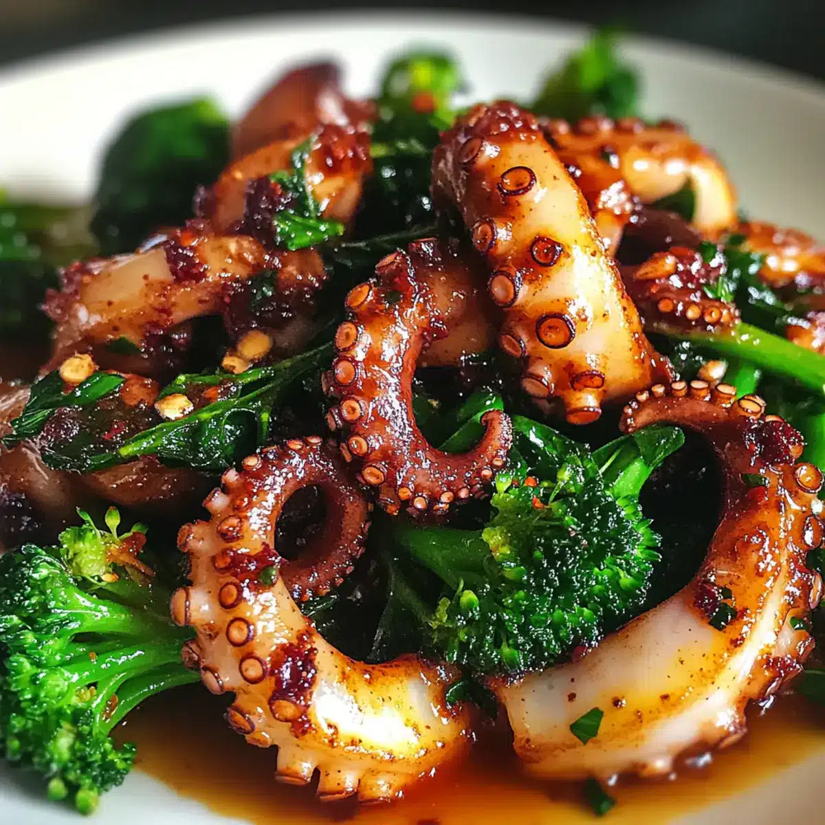 Impressive presentation: The colorful contrast of tender octopus against bright broccolini creates a visually stunning dish that’s sure to impress at any gathering. Discover more seafood inspirations in our seafood recipes collection.