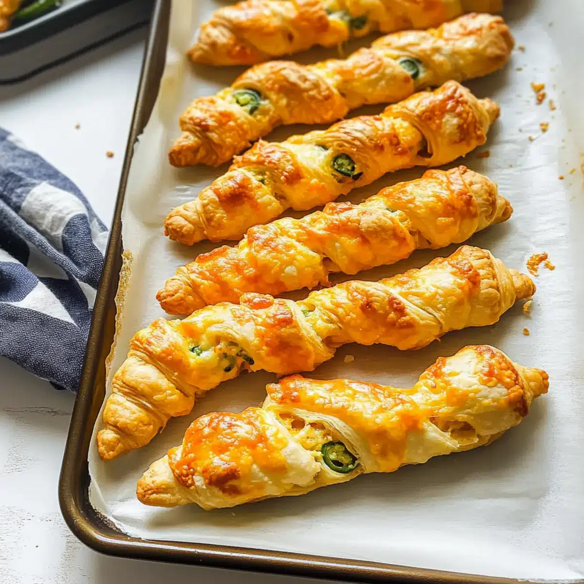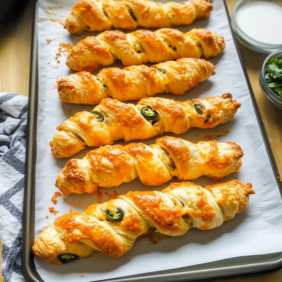 Begin by preheating your oven to 400°F (200°C). While the oven warms up, prepare a baking sheet by lining it with parchment paper. This ensures that your Spicy Jalapeno Popper Twists won’t stick when baking, allowing them to have that perfect golden crust.