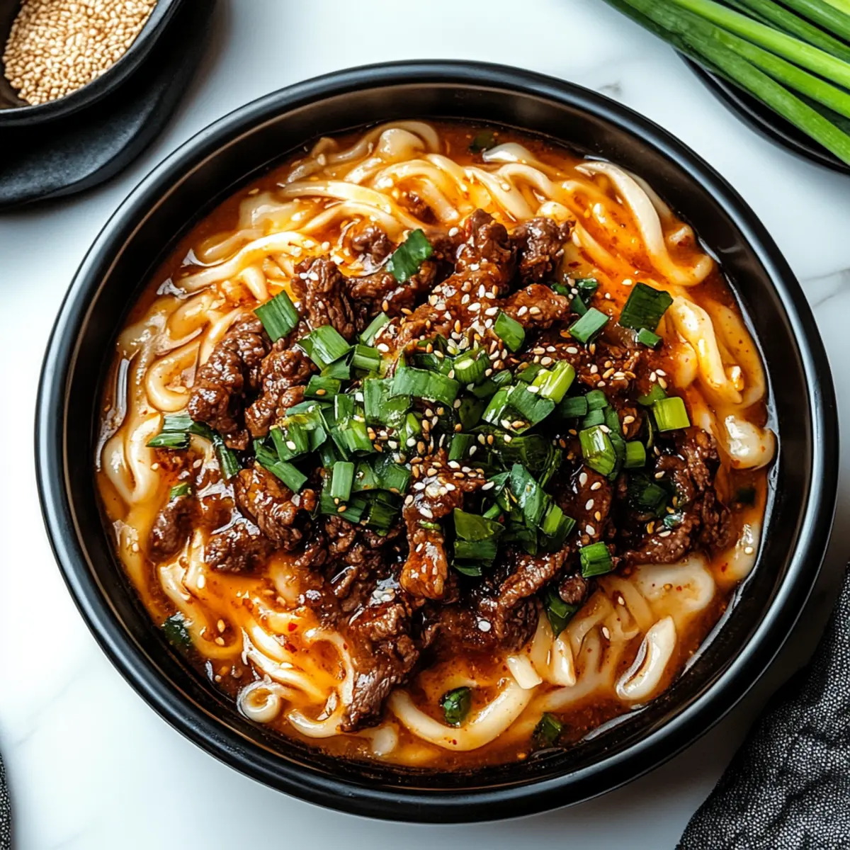 The savory aroma wafting through my kitchen transported me straight to bustling street markets in Seoul, where vibrant flavors mingle in the air. Today, I’m excited to share my latest obsession: Spicy Korean Gochujang Beef Noodles! This dish combines tender beef, chewy noodles, and a kick of gochujang that tantalizes every taste bud. What makes it a standout? Not only is it incredibly quick to whip up, but it’s also super customizable—perfect for those evenings when you want comfort food with a twist. Imagine the satisfaction of savoring each mouthful, knowing you created a spectacular meal from scratch. Are you ready to dive into this spicy, satisfying recipe that will have everyone asking for seconds?