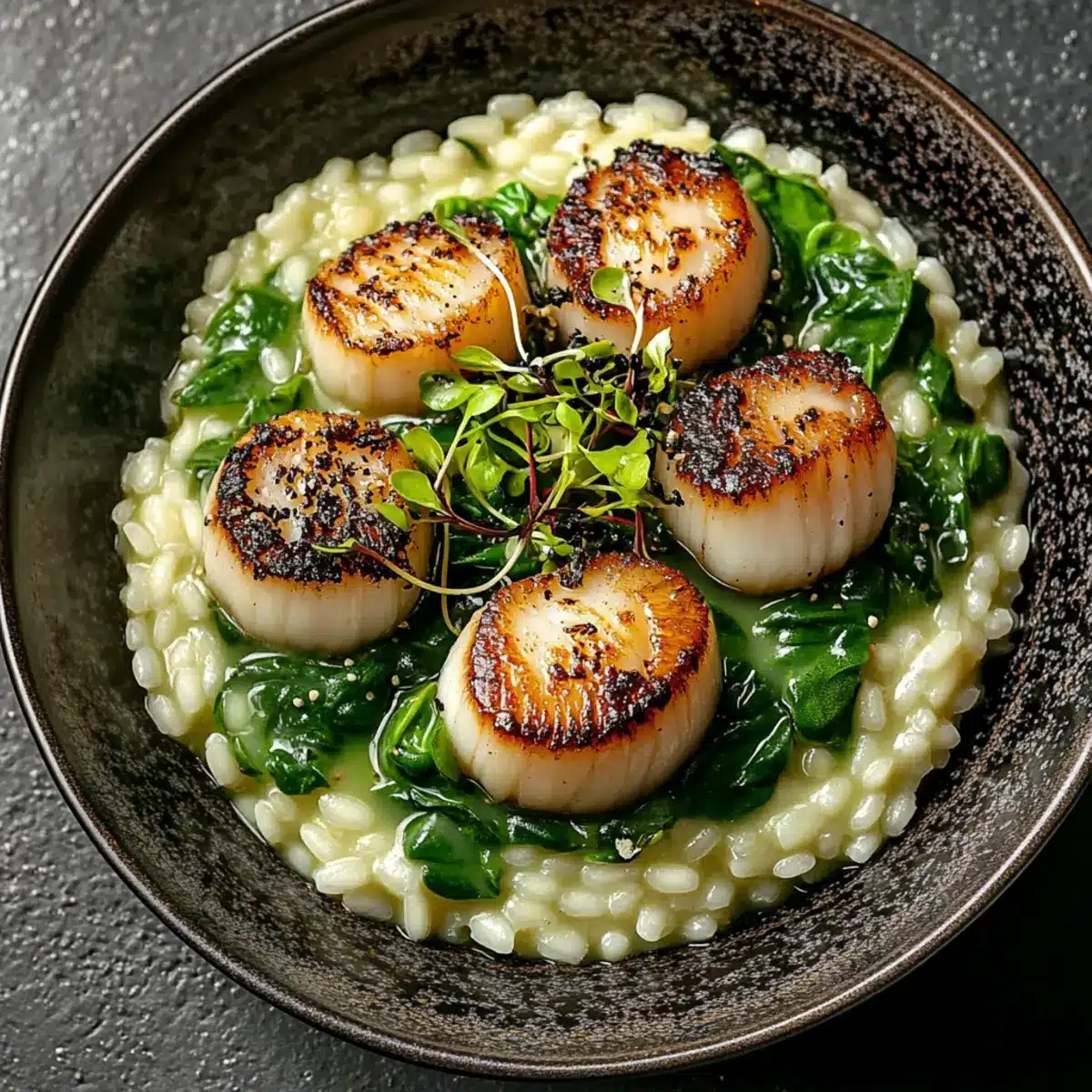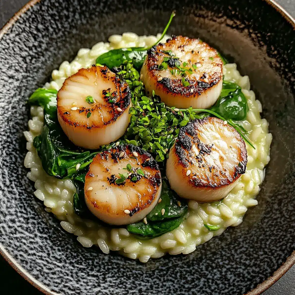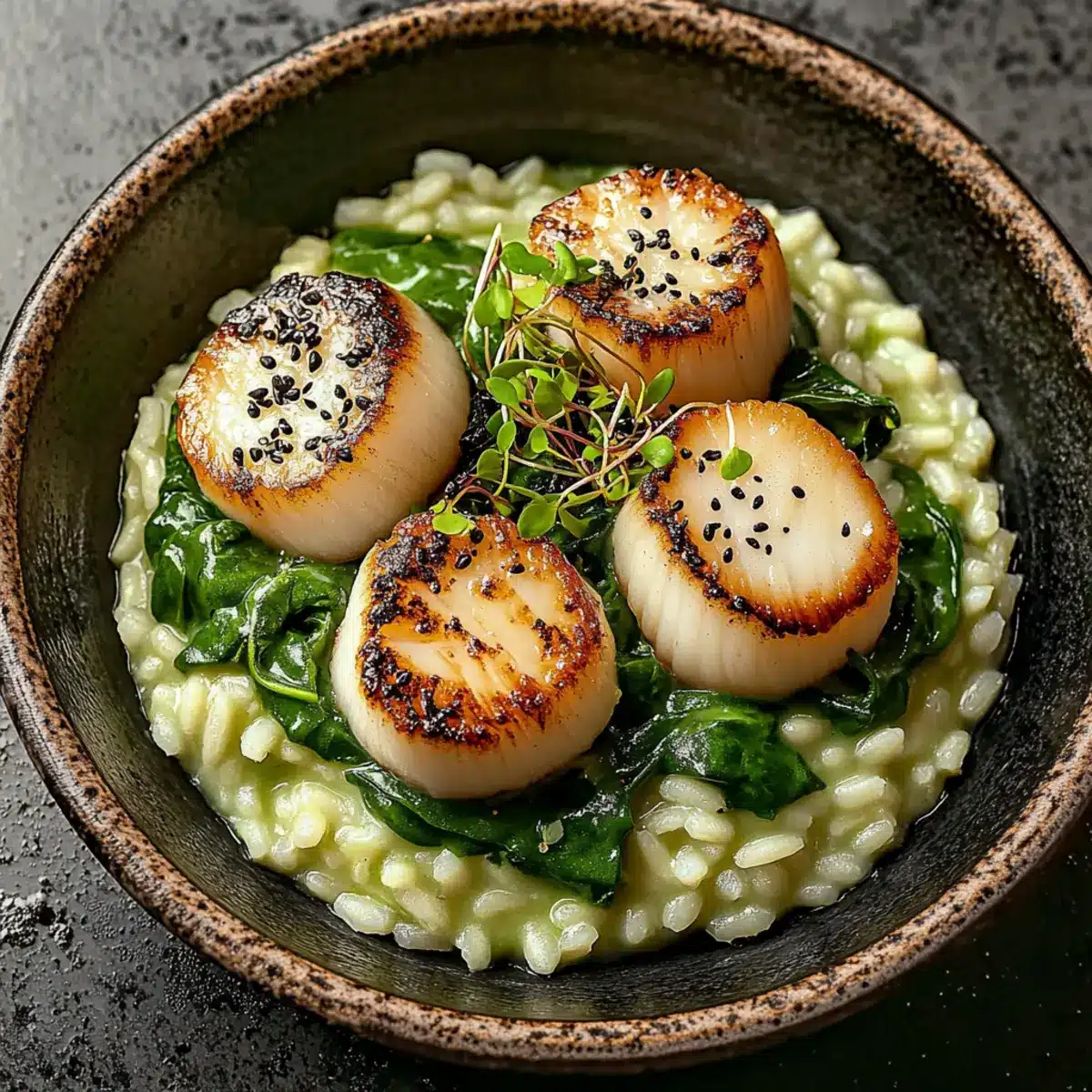 Creamy Spinach Parmesan Risotto with Seared Scallops Delight