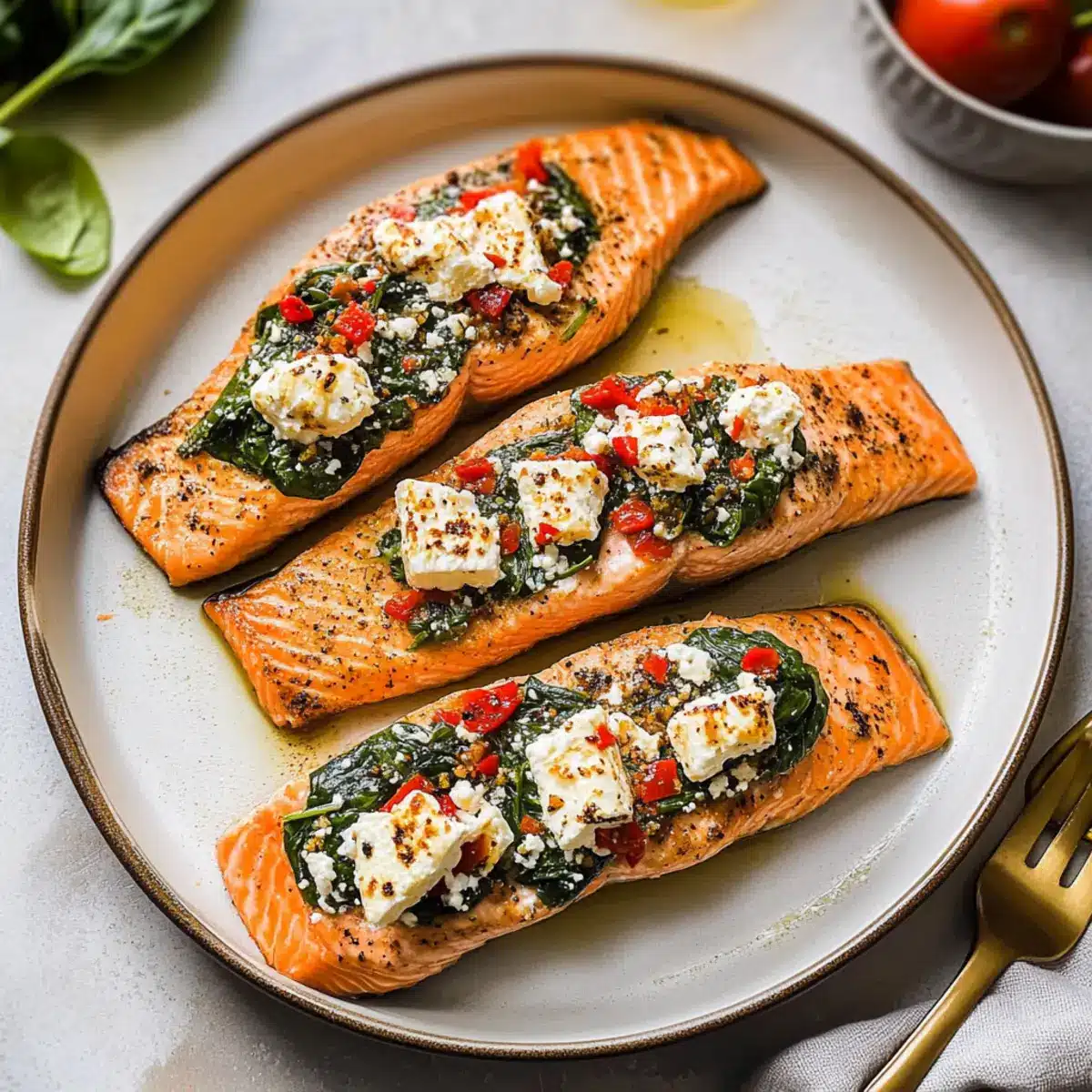 As I pulled back the foil from my baking dish, the warm aroma of sautéed spinach and melting feta enveloped me, instantly transporting me to a sun-kissed Mediterranean kitchen. This Spinach and Feta Stuffed Salmon has become my go-to dish when I want to impress guests or simply treat myself to something special. Boasting a nutritious yet indulgent flavor profile, this delightful recipe is both quick to prepare and elegant enough for any dinner party—it’s ready in just 30 minutes! Each bite reveals perfectly flaky salmon enveloping a savory stuffing that’s not just gluten-free but also packed with wholesome ingredients. Curious about how to bring this Mediterranean magic to your table? Let’s dive into this delicious journey together!