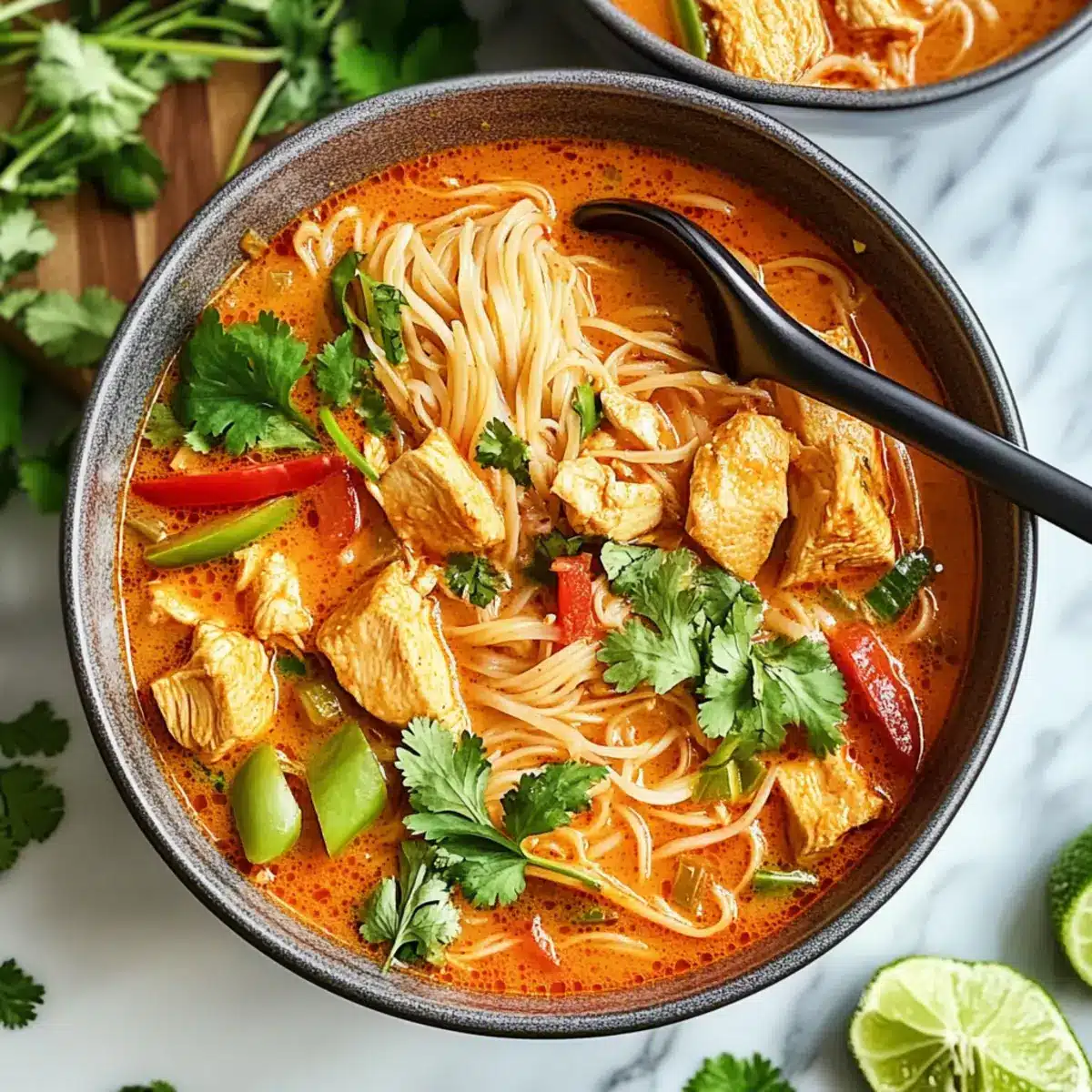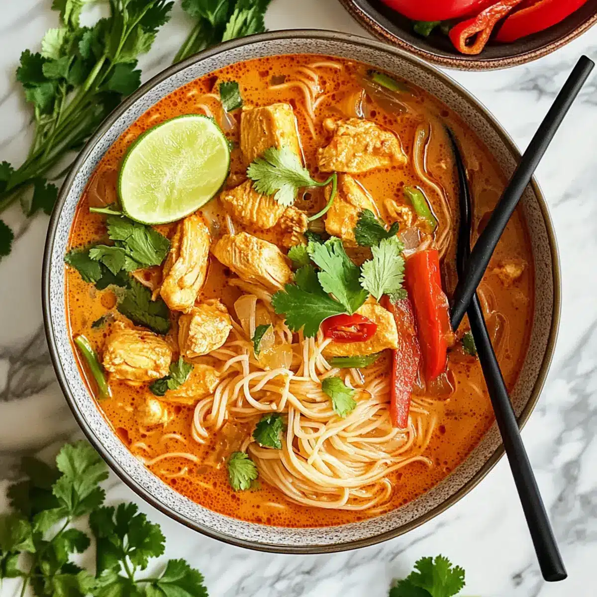 Very! This Thai Red Curry Noodle Soup is versatile and allows for various dietary adaptations. For gluten-free options, choose rice noodles and gluten-free broth. If you have soy allergies, you can skip the fish sauce and replace it with a splash of lime juice for added zing. It’s great for vegetarians too, just substitute chicken with tofu and use vegetable broth!