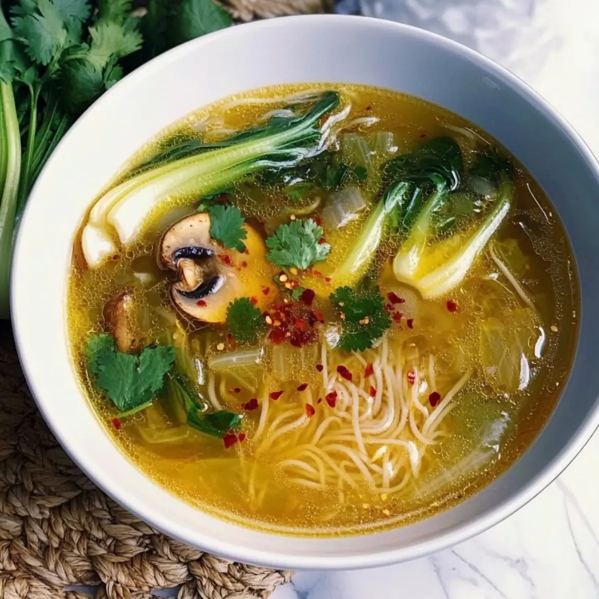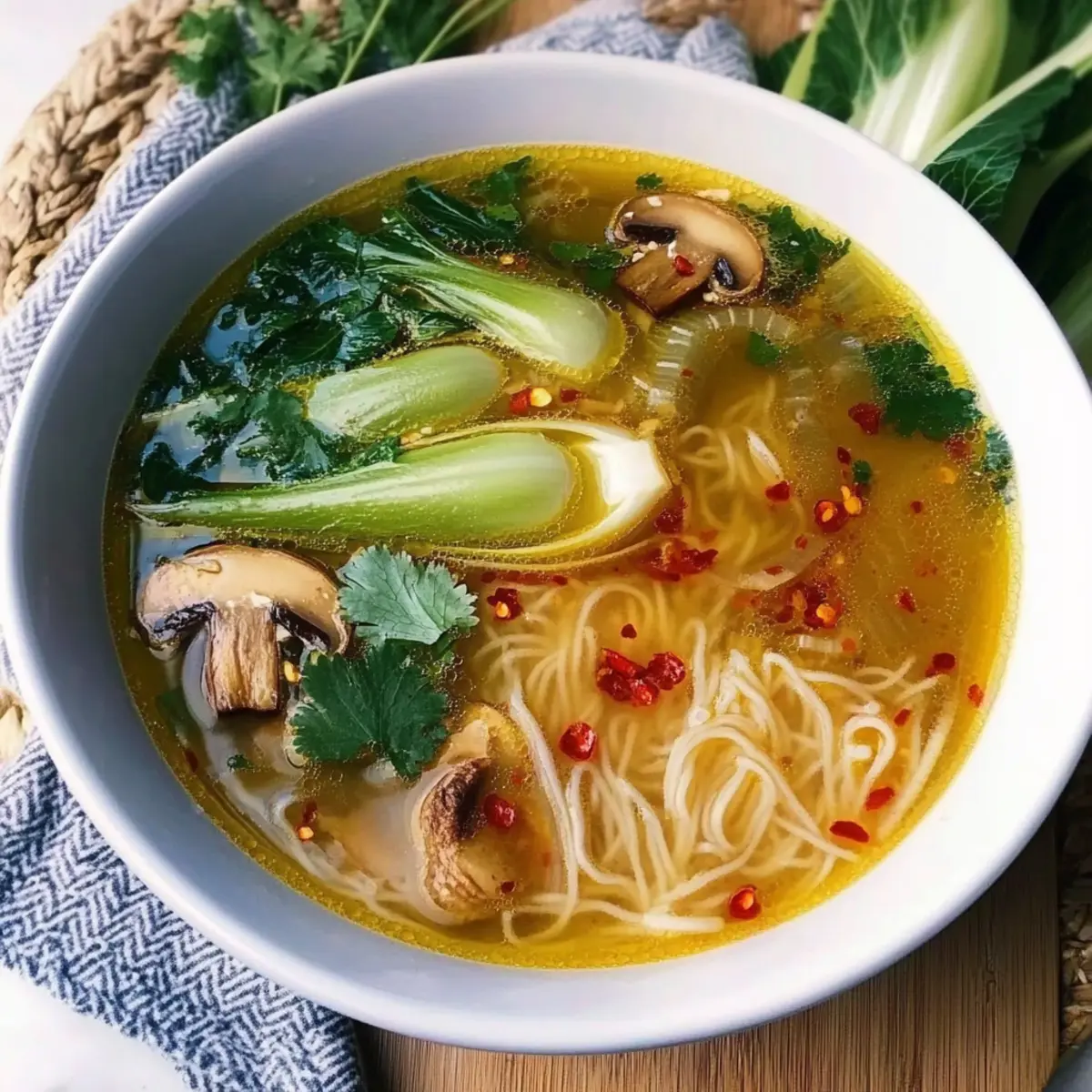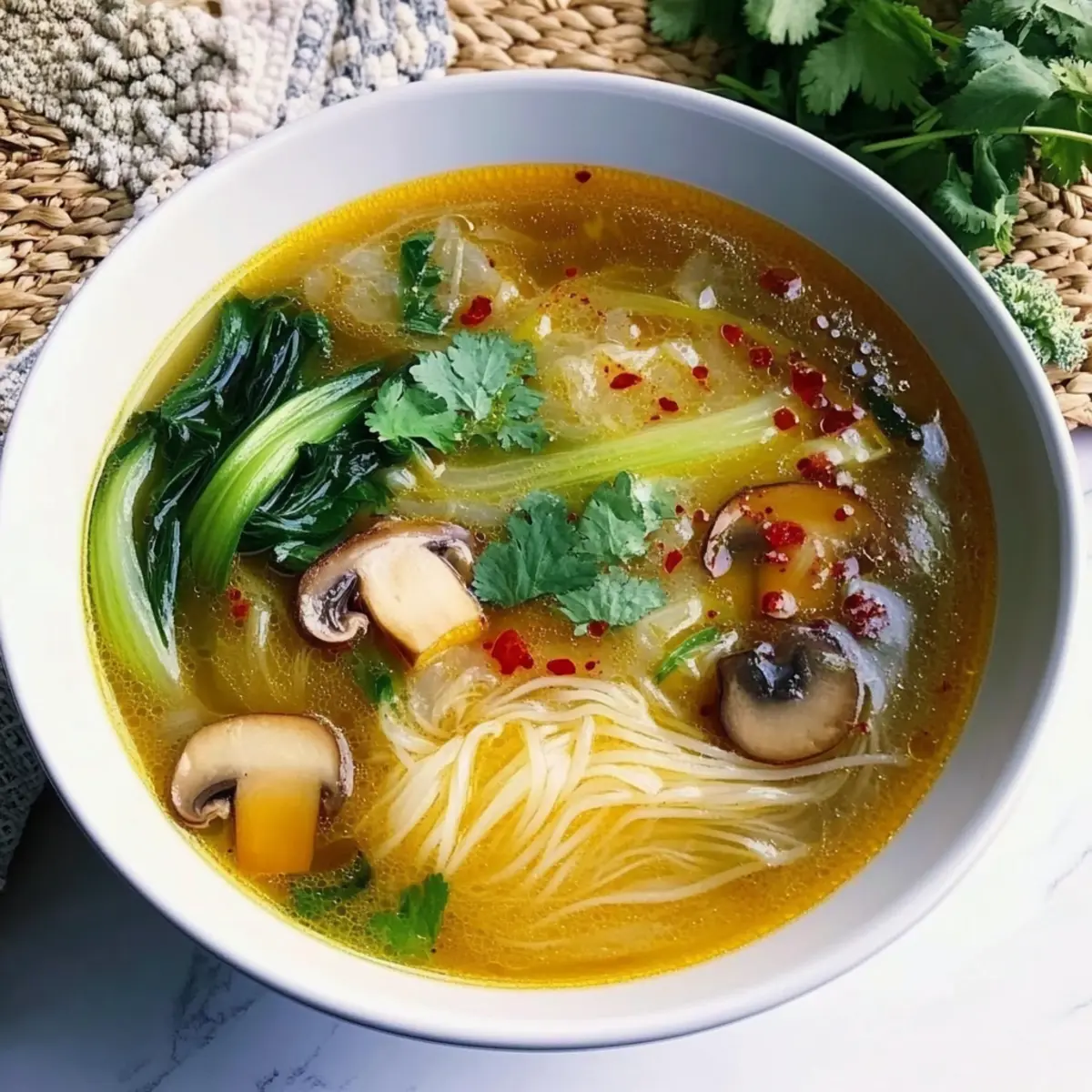 Feel free to get creative with your veggie choices! While this recipe suggests baby bok-choy, mushrooms, and celery, you can easily substitute in favorites like broccoli, sweet potatoes, or red peppers. The key is to incorporate vegetables that add both texture and flavor to the soup, making it your own unique blend!