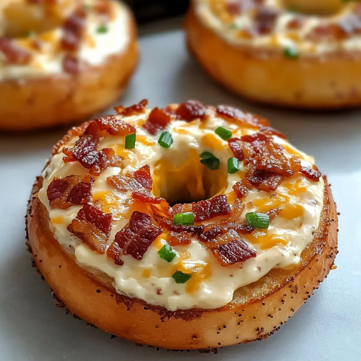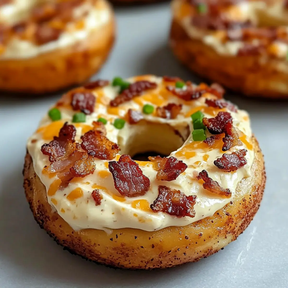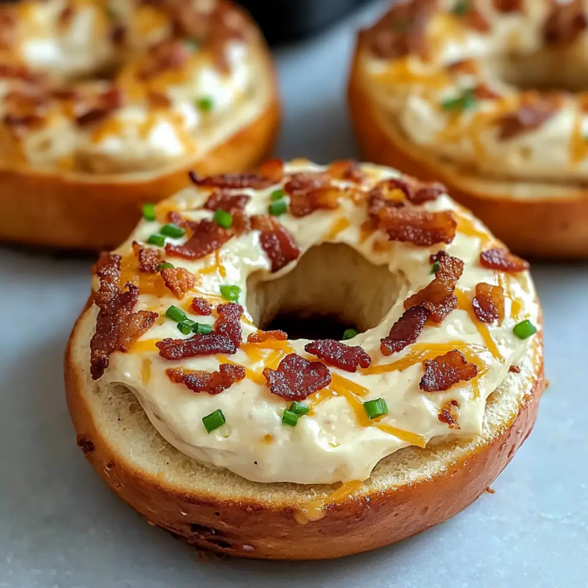 - Let the bagels cool slightly, then garnish with reserved bacon and fresh chives before serving warm.